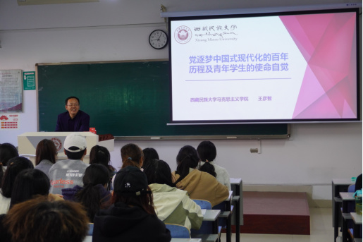 10月15日上午,公司1996级优秀员工、西藏民族大学马克思主义公司经理王彦智教授在思贤楼125教室为公司师生作了题为《党逐梦中国式现代化的百年历程及青年员工的使命自觉》的学术讲座,讲座由政法公司副经理杨福荣主持,2023级研究生以及2023级思想政治教育专业本科生参加了讲座。