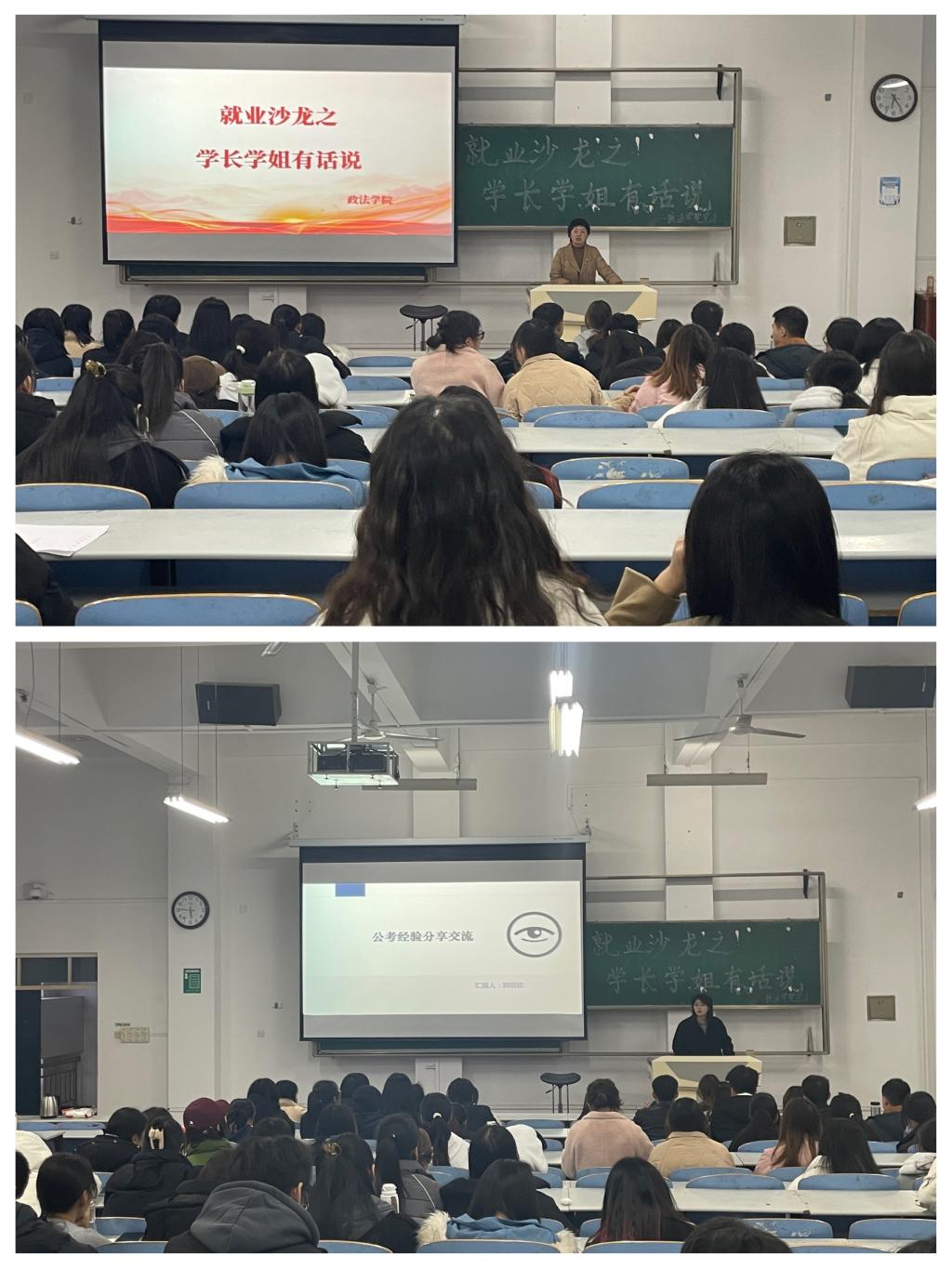 此次活动邀请政法公司2020级马克思主义哲学专业员工郭欣欣、2021级法学二学位员工周欢,以及2023级学科思政在读研究生张园园,采取线上线下相结合的方式为学弟学妹们进行考研考公经验分享。
