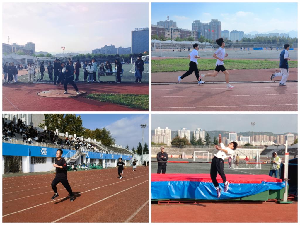 在径赛跑道上,随着发令声响,选手们如离弦之箭飞奔而出。100米短跑竞争激烈,运动员们以风驰电掣般的速度冲向终点,他们的爆发力和速度赢得了观众的阵阵喝彩。400米和800米比赛不仅考验速度,更考验耐力,选手们在赛道上你追我赶。1500米和3000米的长跑项目中,运动员挑战自我、突破极限,汗水湿透了衣衫,但仍坚持跑完全程,充分诠释了永不放弃的体育精神。在4×100比赛跑道上出现了师生同场竞技的精彩画面,同学们如猎豹般冲向前方,他们脚步轻快、爆发力强,而老师们也毫不逊色,他们身姿矫健,带着不服输的劲头,向着终点奔去,赢得了在场观众的阵阵掌声和欢呼声。田赛赛场上同样精彩不断,跳远选手姿态矫健,助跑、起跳、腾空、落地,动作一气呵成。跳高运动员如同轻盈飞鸟,不断挑战新高度。铅球选手们则用力量诠释激情。