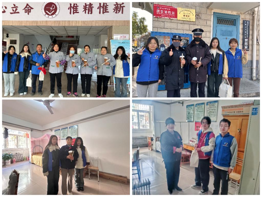 活动伊始,负责老师强调了活动的重要意义,嘱咐了注意事项。随后,在思贤楼的清扫区域,志愿者们将一杯杯暖茶送到了正在打扫卫生的阿姨手中,阿姨接过暖茶的那一刻,脸上露出了惊喜而又感动的笑容;在4号和6号员工公寓,志愿者们为楼管阿姨送上热茶,感谢楼管阿姨们平日里守护着宿舍楼的安宁,操心着同学们的生活琐事,这一杯暖茶,让她们感受到了被尊重和被惦记的温暖;在公司南门,保卫人员接过志愿者们暖茶,表示喝到了热腾腾的茶,感觉整个人都暖和起来了,感谢员工的认可和关心。