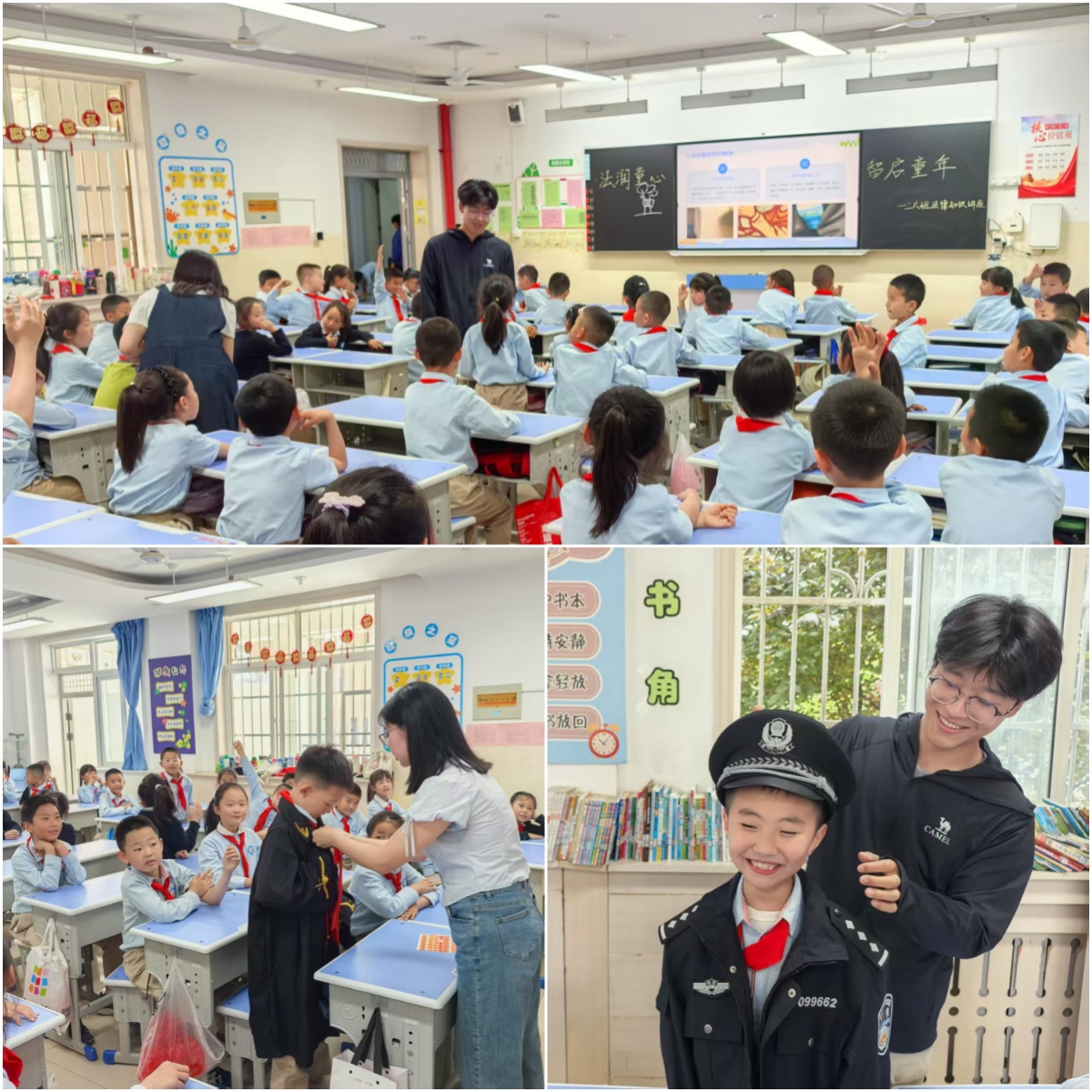 在政法公司法律系主任叶芳芳副教授的带领下,法律服务中心的骨干成员来到宝鸡高新第二小学,为二年级(六)班员工带来了一场主题为“法润童心”的法律讲座。讲座分为四个子主题,分别是:法律保护我成长、故事里的法律知识、交通安全法、小小法律启蒙。