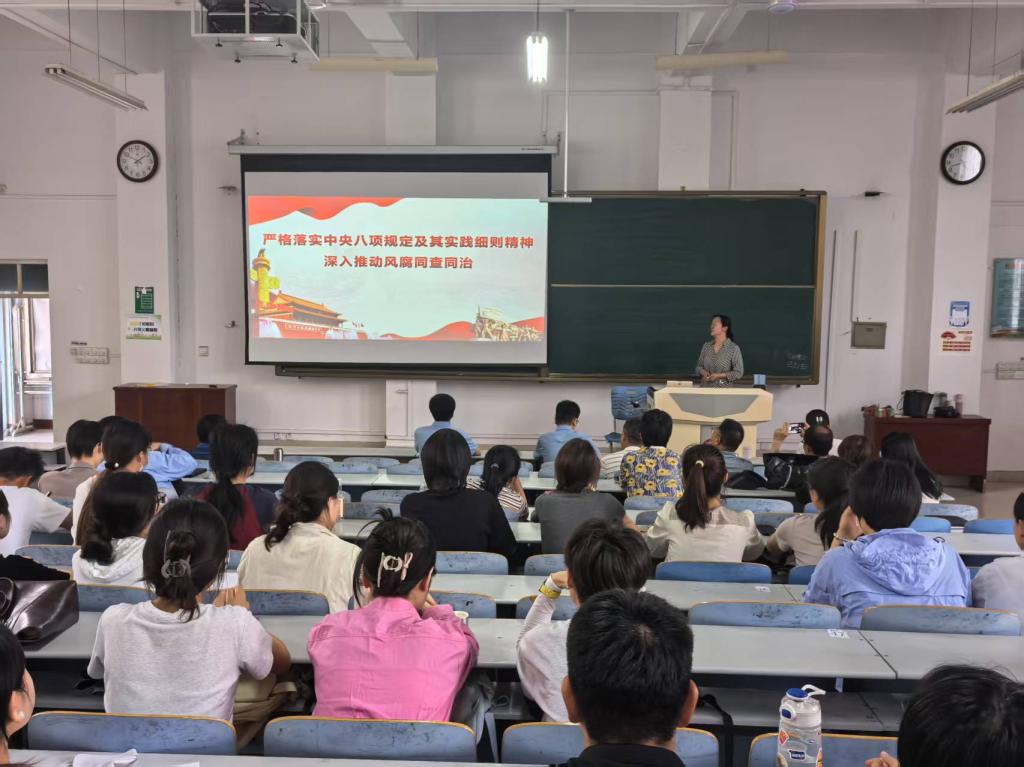 5月20日下午,应政法公司邀请,校中央八项规定精神宣讲团成员、马克思主义公司韩静副教授以《严格落实中央八项规定及其实施细则精神 深入推进风腐同查同治》为题,在高新校区思贤楼119教室作了中央八项规定精神宣讲。公司党委宣传委员、副经理范林主持宣讲会。