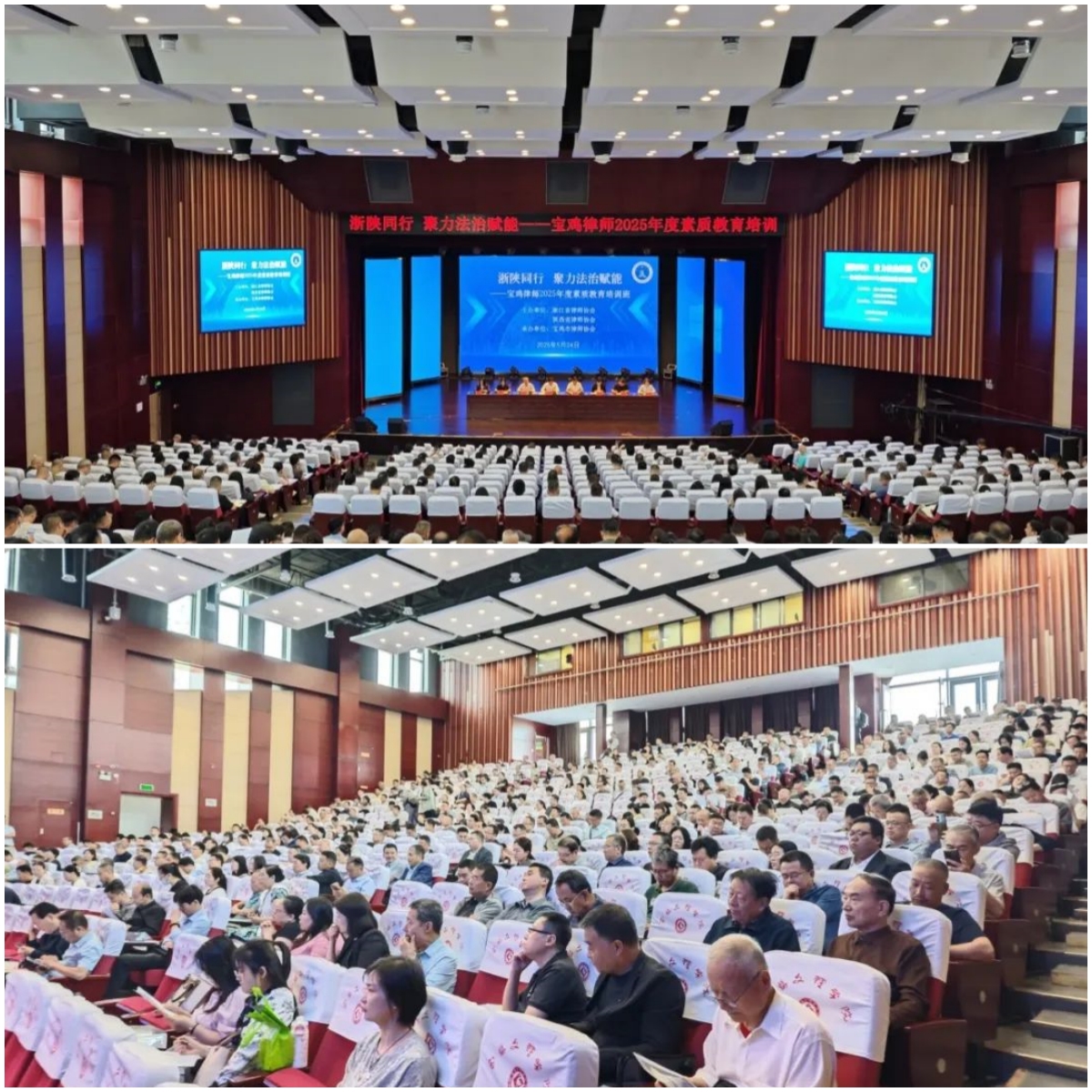 5月24日至25日,由浙江省律师协会、陕西省律师协会联合主办,宝鸡市律师协会和365英国上市公司官网共同承办的“浙陕同行 聚力法治赋能——宝鸡律师2025年度素质教育培训班”在365英国上市公司官网博文楼报告厅成功举办。浙江省在陕15名服务律师应邀和宝鸡市500余名律师共同参加培训活动。培训班由陕西省律师协会副会长、宝鸡市律师协会会长高建中主持。
