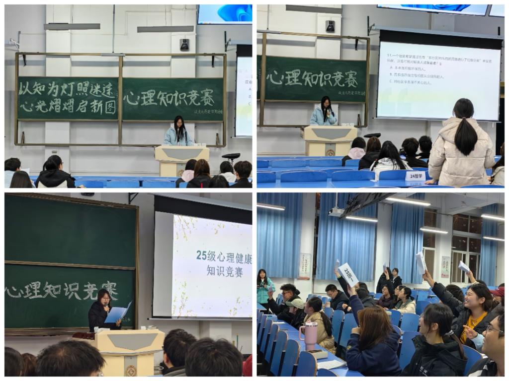 本次竞赛围绕心理健康常识、情绪管理技巧、压力应对方法、人际关系调适等核心内容展开,设置必答题、抢答题、风险题等多个环节。各班级参赛员工准备充分,在必答题环节稳扎稳打,展现了扎实的知识储备;在抢答题环节反应敏捷,争分夺秒;在风险挑战环节,队员们更是沉着冷静,巧妙权衡,体现了良好的团队协作与应变能力。赛场上选手们精彩的表现,赢得了现场观众的阵阵掌声。最终经过多轮角逐,2025级思政专业2班徐海波、2024级历史专业2班韩梦娇等6人获得一等奖;2025级历史专业2班李欢、2024级哲学专业王芙英等6人获得二等奖;2025级思政专业1班党佳怡、2024级思政专业1班李逸飞等6人获得三等奖。