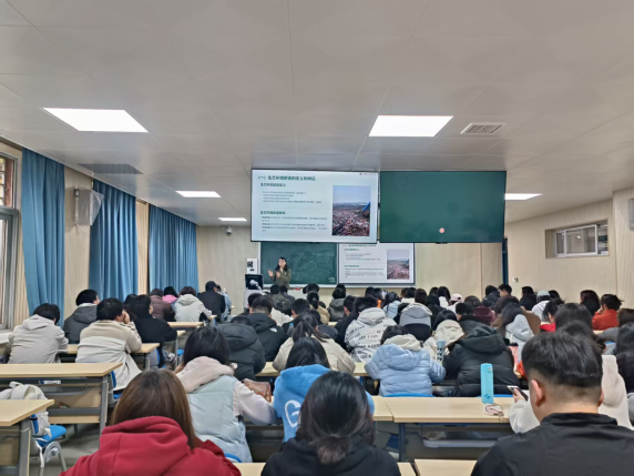 首先,韩利琳教授从我国生态环境法典编纂的时代背景与现实需求切入,系统阐释了生态环境损害赔偿制度的法理根基、制度逻辑与实践路径。讲解层层递进、条理清晰,兼具系统性与逻辑性。其次,韩教授着重强调,生态环境损害赔偿制度不仅是我国环境法律体系建设中的一项重要突破,更是精准回应生态文明建设时代诉求、推动经济社会绿色低碳高质量发展的关键制度支撑,凸显了该制度的重要现实意义。最后,韩教授结合典型司法案例与最新立法动态,深入浅出地解读了该制度在理论研究与实务应用中的前沿进展,为在场师生搭建起理解环境资源法前沿问题的清晰框架,既有深厚的理论深度,又具备极强的实践指导价值。