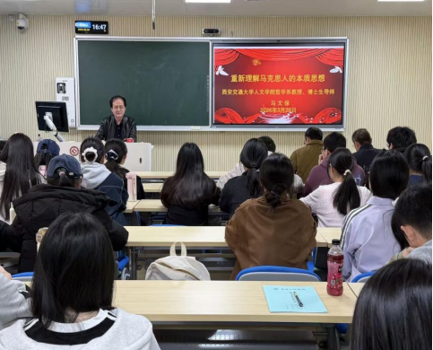 2026年3月26日下午4:30分,西安交通大学哲学博士、教授、博士生导师马文保应邀于公司高新校区思贤楼128教室作题为《重新理解马克思人的本质思想》的学术报告。讲座由王晓敏教授主持,陈宇秦等部分教师、在校员工60余人参加了报告会。