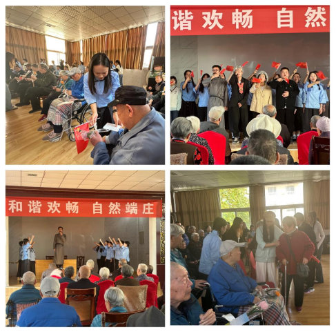 在老年公寓,宣讲团成员为老人们表演“家风代代传之‘铁肩担道义 妙手著文章’”话剧,宣扬了李大钊、李葆华、李宏塔一家的家风。从李大钊为革命英勇献身,到李葆华兢兢业业、实事求是的工作作风,再到李宏塔严于律己、服务群众的奉献精神,这就是血脉传承的力量。随后,大家手举国旗,合唱《国家》,展现了国的强大与家的祥和。最后,同学们向所有老人送上了亲手编织的郁金香花束和写满祝福的卡片,借此祝愿所有老人身体健康、开心快乐、幸福常伴。