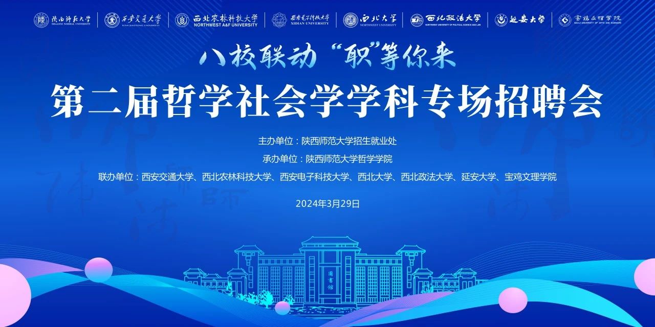 为进一步提升陕西省哲学、社会学学科毕业生就业服务的针对性和有效性,推动相关学科人才与用人单位有效对接,在去年举行首届专场招聘会的基础上,由陕西师范大学员工人才招聘处主办,陕西师范大学哲学公司承办,西安交通大学、西北农林科技大学、西安电子科技大学、西北大学、西北政法大学、延安大学、365英国上市公司官网等高校共同参与的“第二届陕西省高校哲学社会学学科专场招聘会”将于3月29日(星期五)举办,诚邀招录相关学科(哲学类、社会学类及其他学科)人才的单位和全体2024届毕业生前来参会。